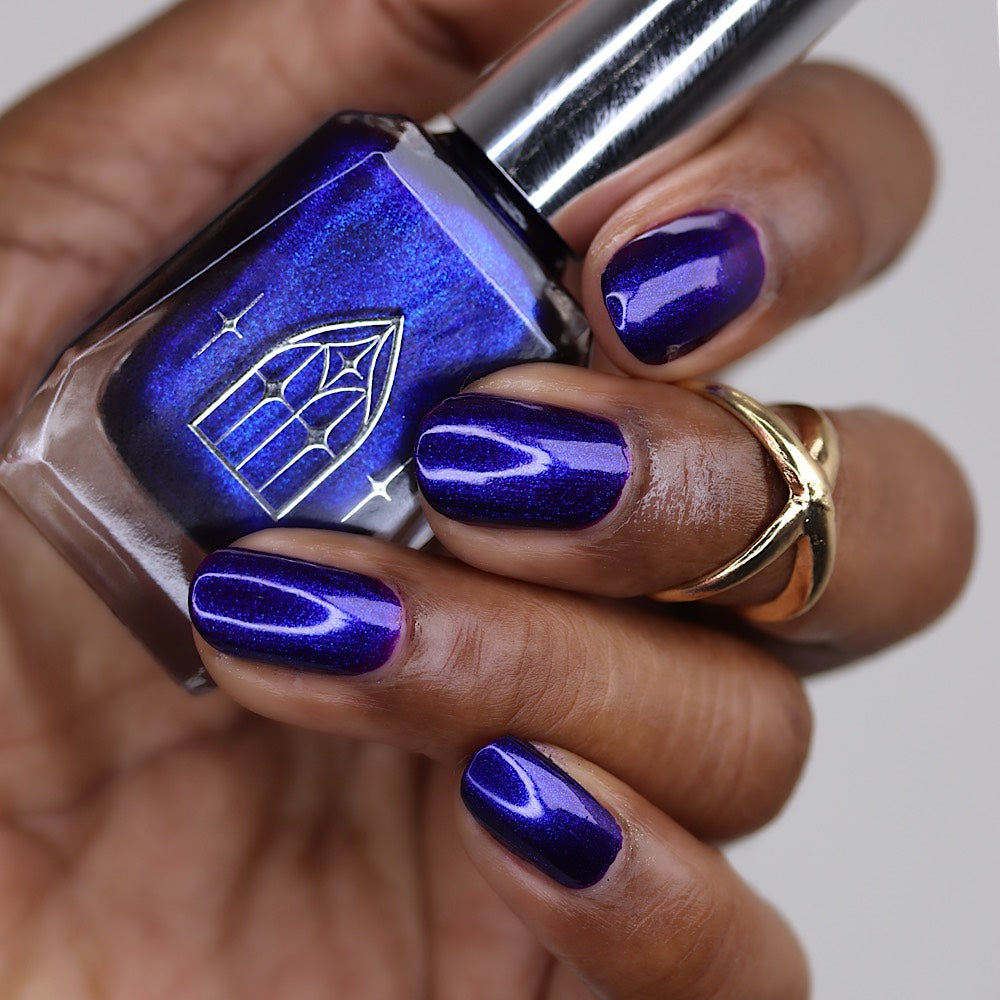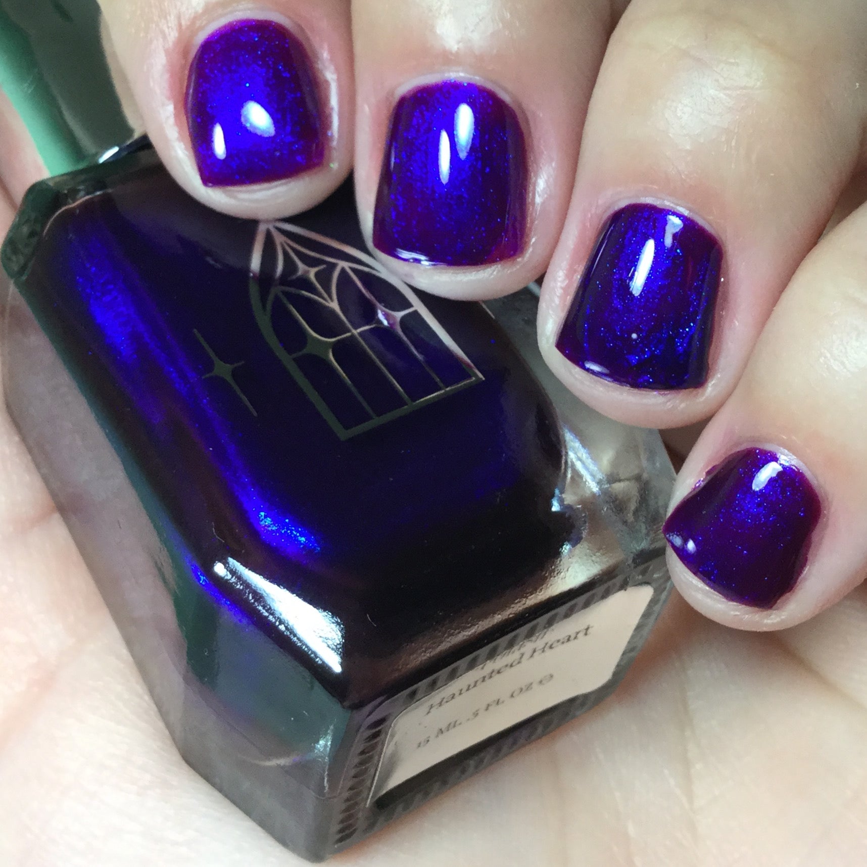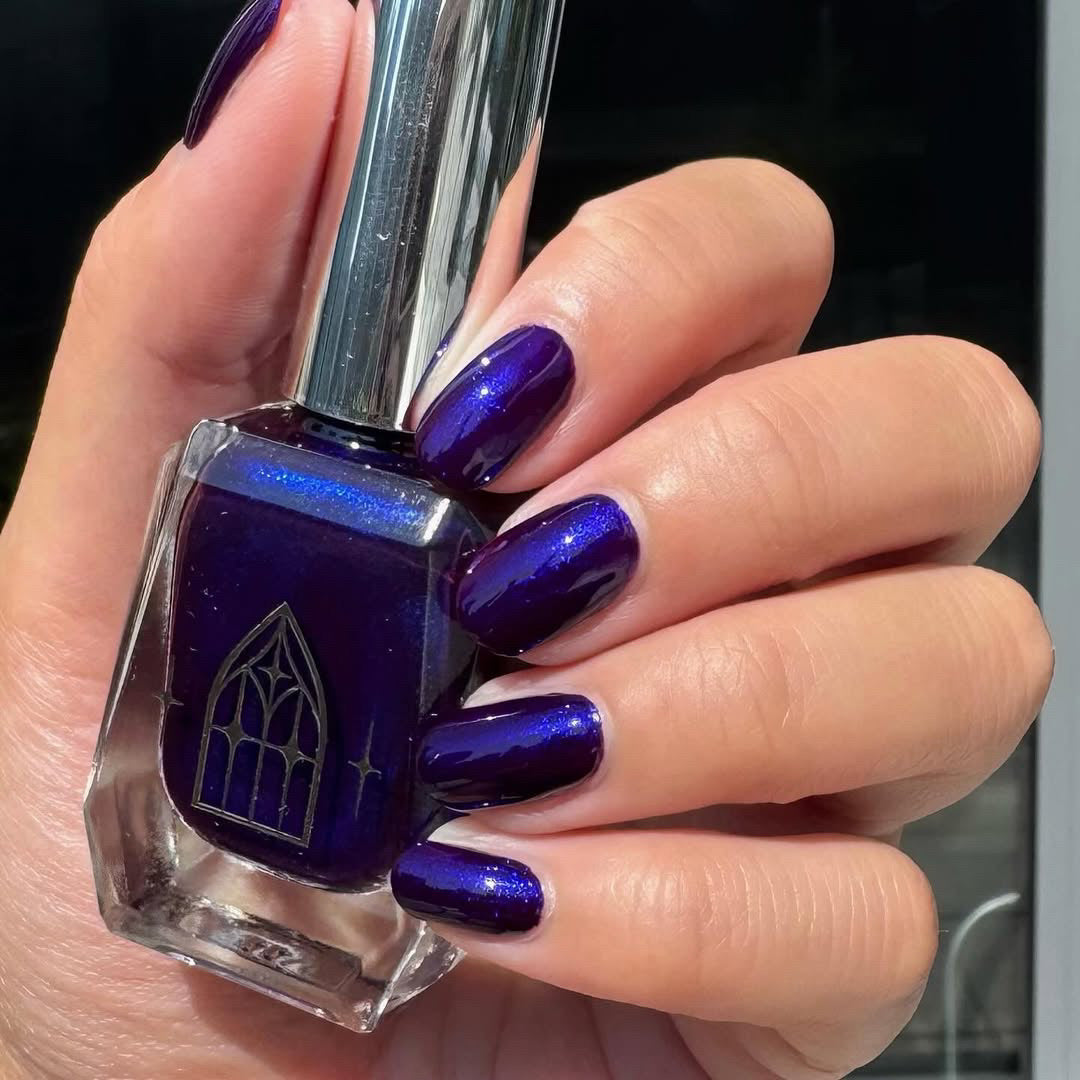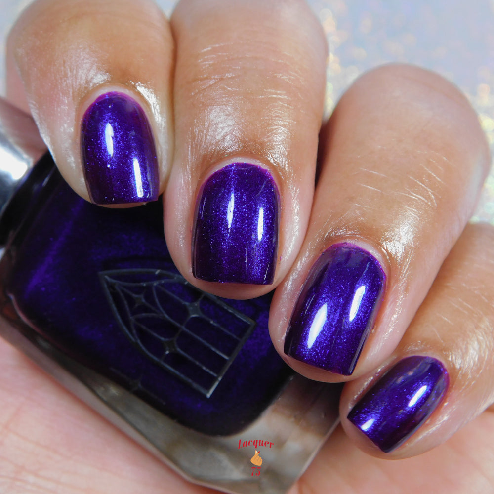 HAUNTED HEART is a rich berry with haunting blue shimmer. This shade is for the souls who thrive in the shadows. Let your haunted heart show in two coats for full opacity.