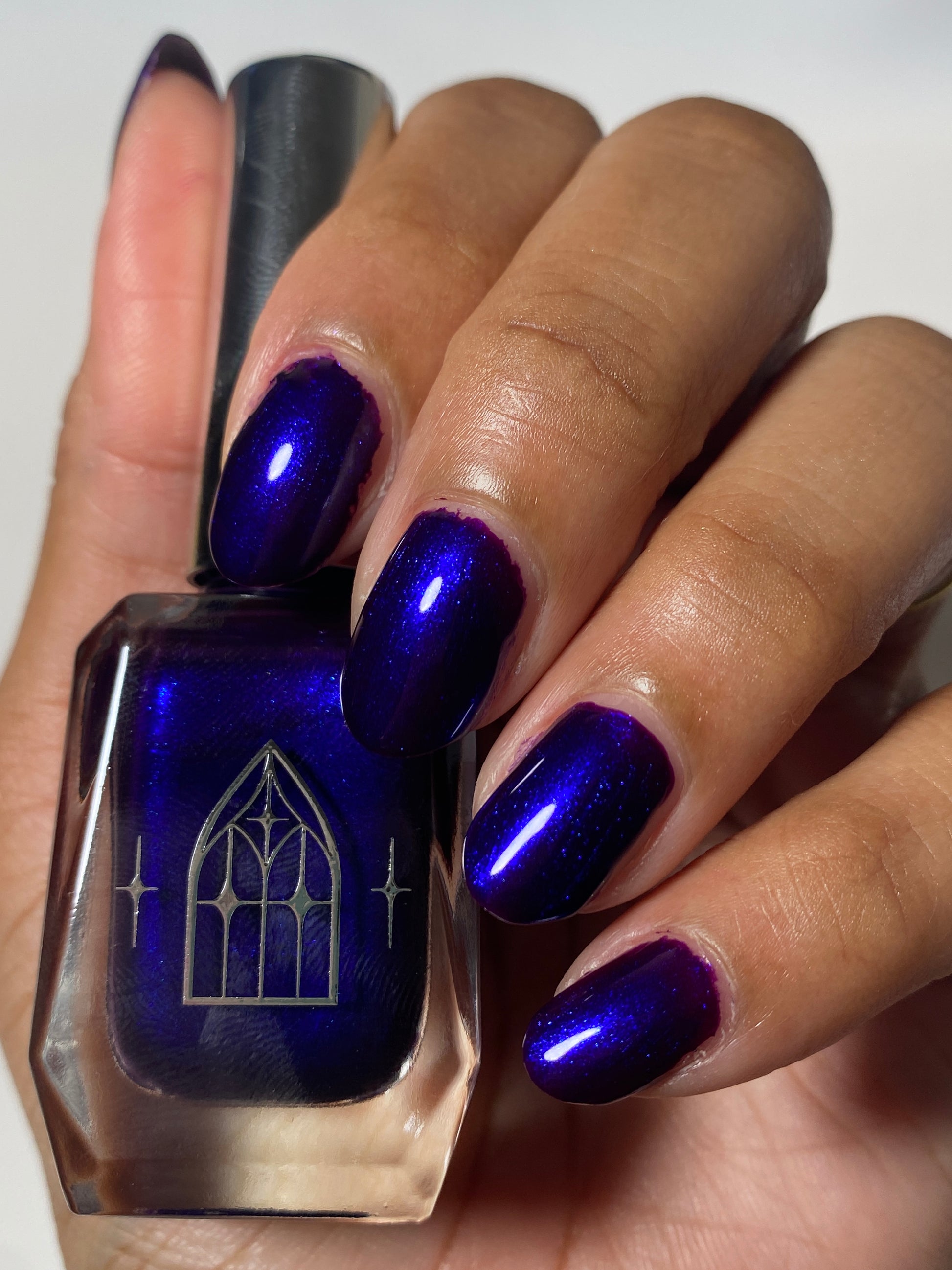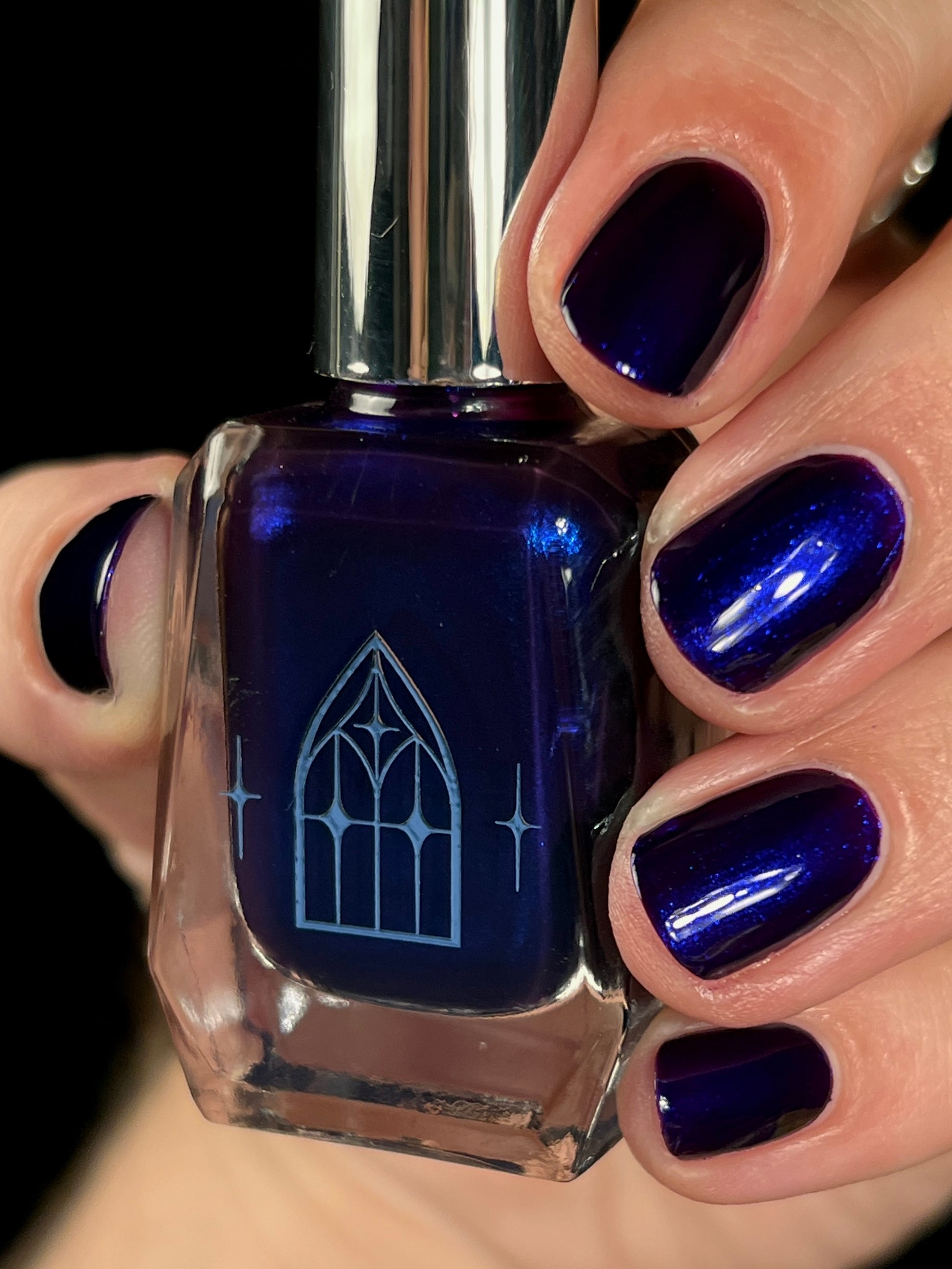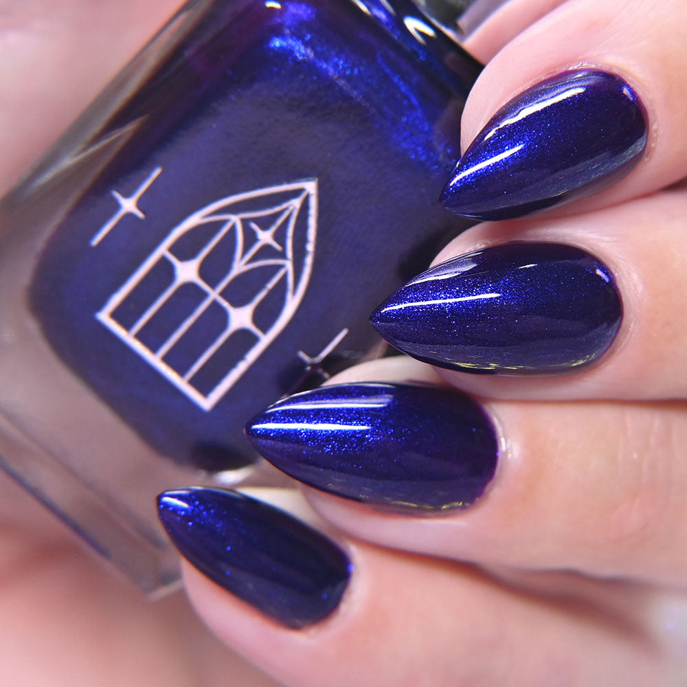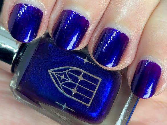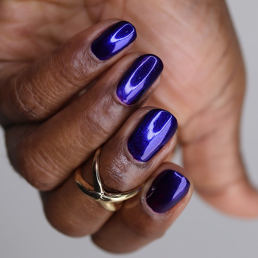 HAUNTED HEART is a rich berry with haunting blue shimmer. This shade is for the souls who thrive in the shadows. Let your haunted heart show in two coats for full opacity.