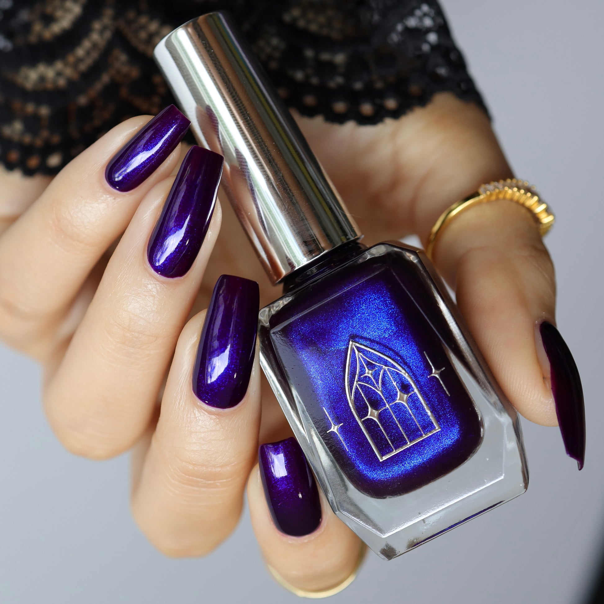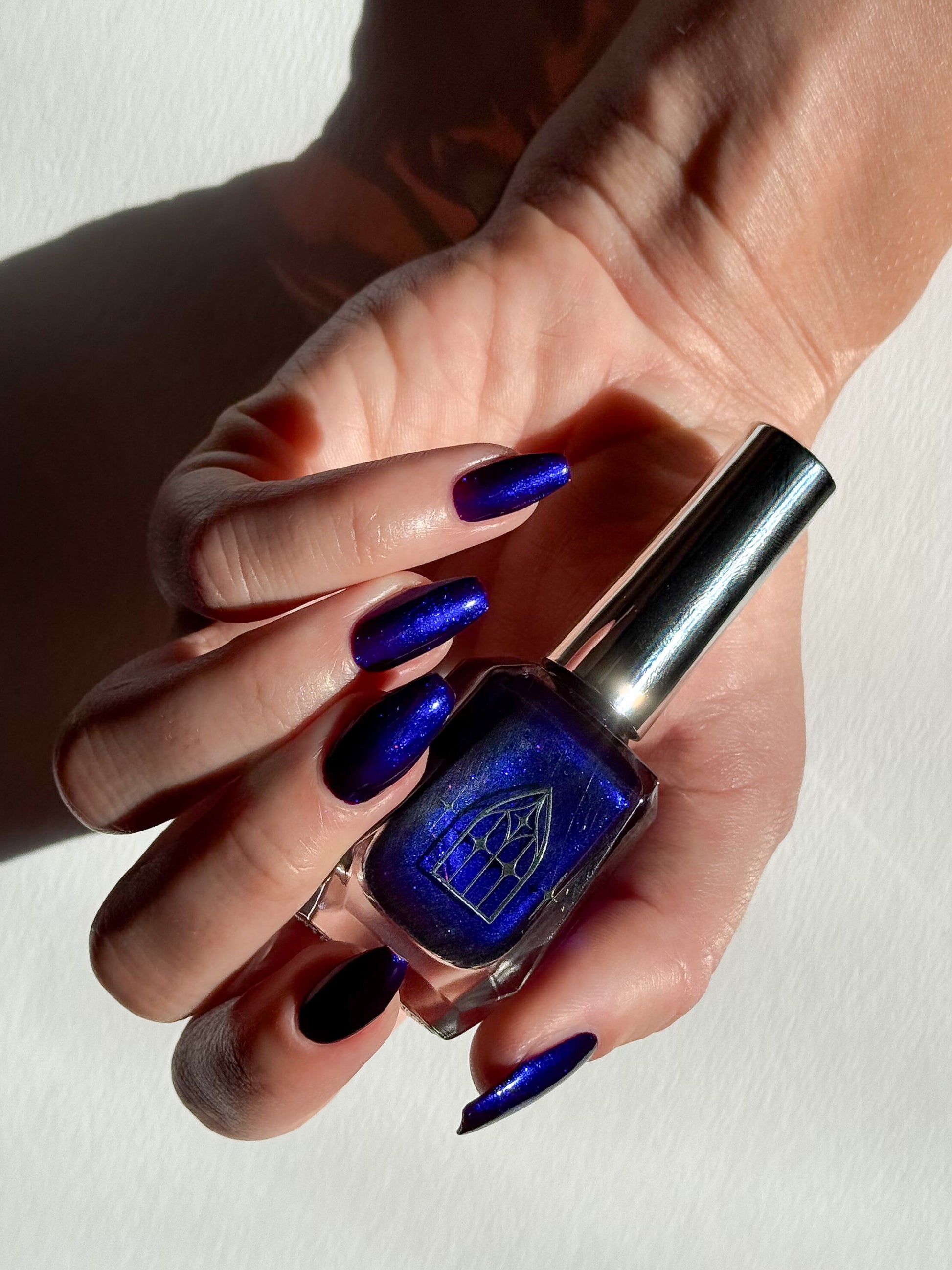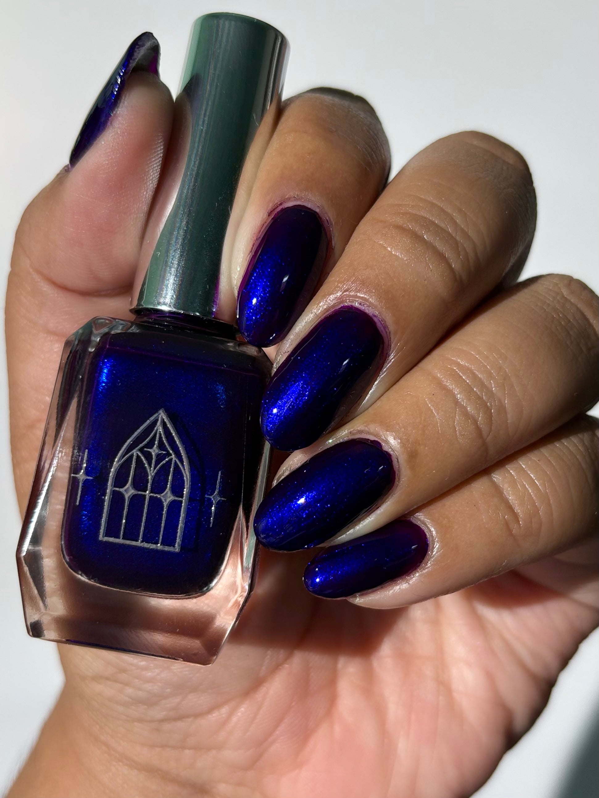 HAUNTED HEART is a rich berry with haunting blue shimmer. This shade is for the souls who thrive in the shadows. Let your haunted heart show in two coats for full opacity.