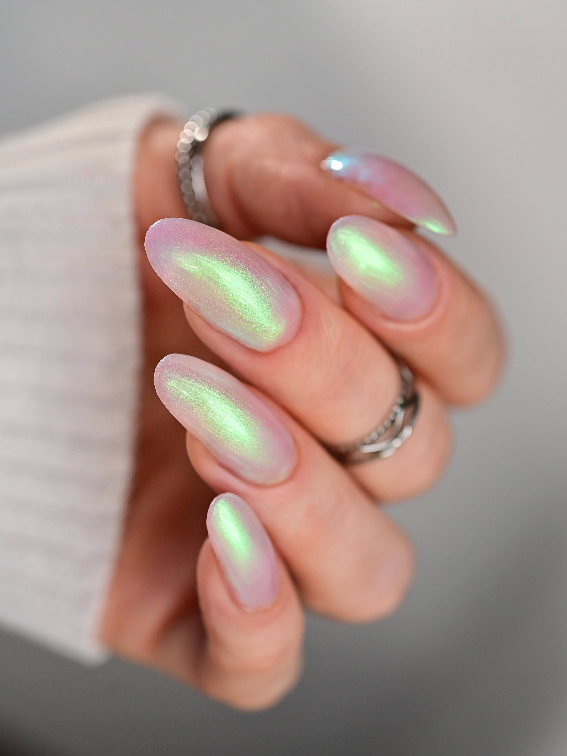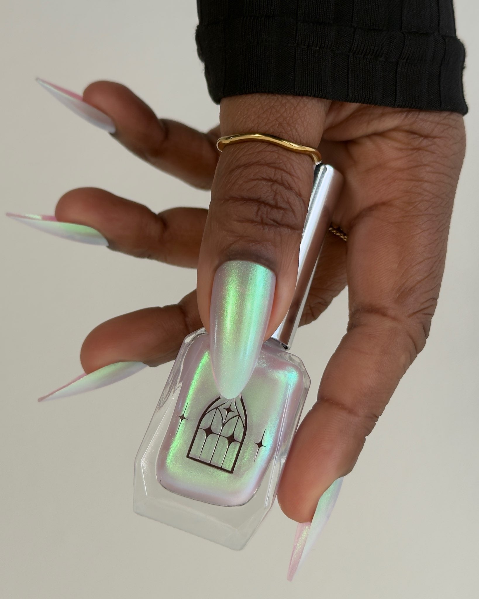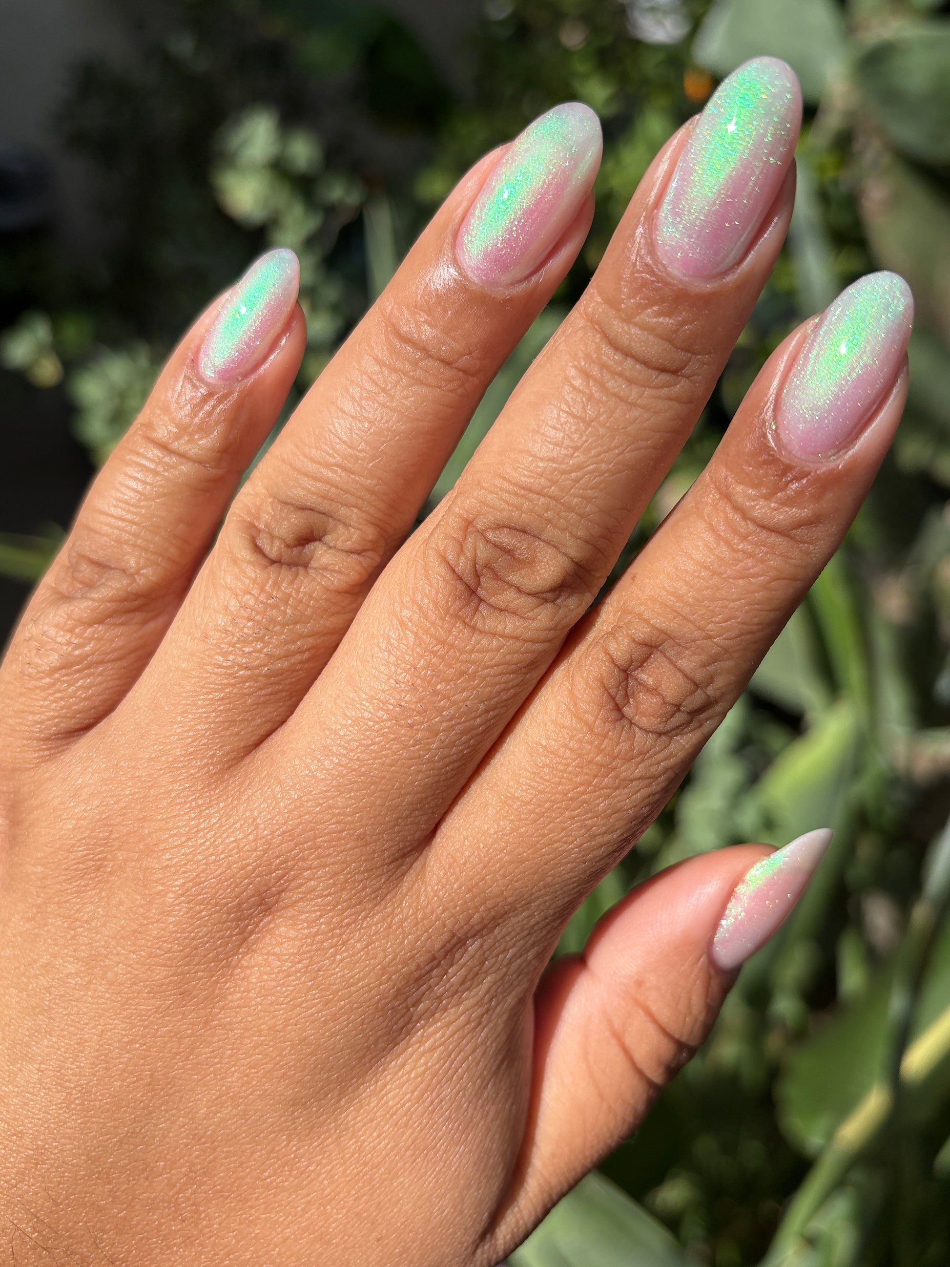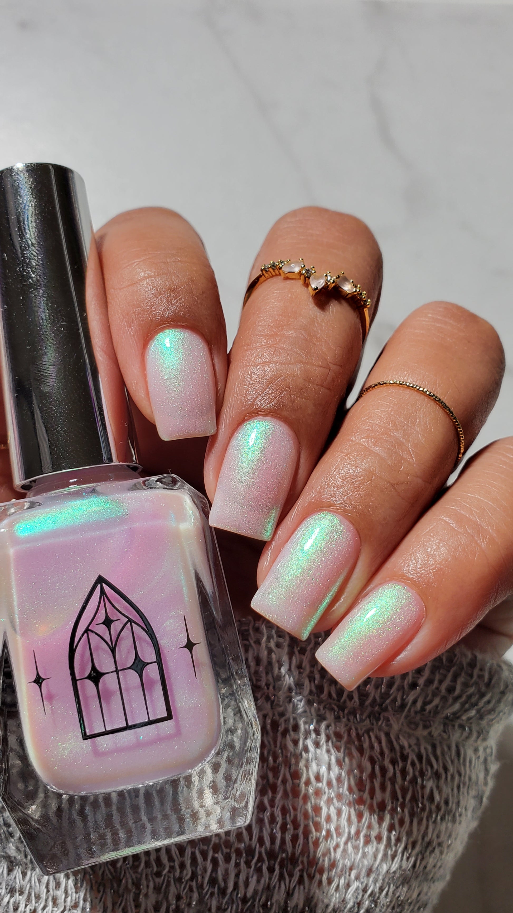 STAR STRAND is a sheer shimmering green to teal shifting polish. Like the cool glimmer of starlight caught on spider's silk. Watch it's astral glow appear in two to three coats.